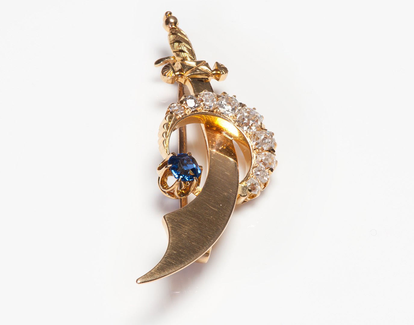 Victorian Gold Old Mine Cut Diamond Sapphire Sword Brooch