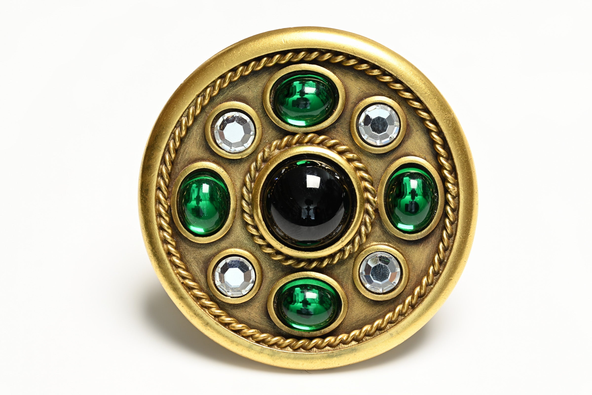 Vintage Yves Saint Laurent YSL Paris Green Cabochon Glass Crystal Brooch
