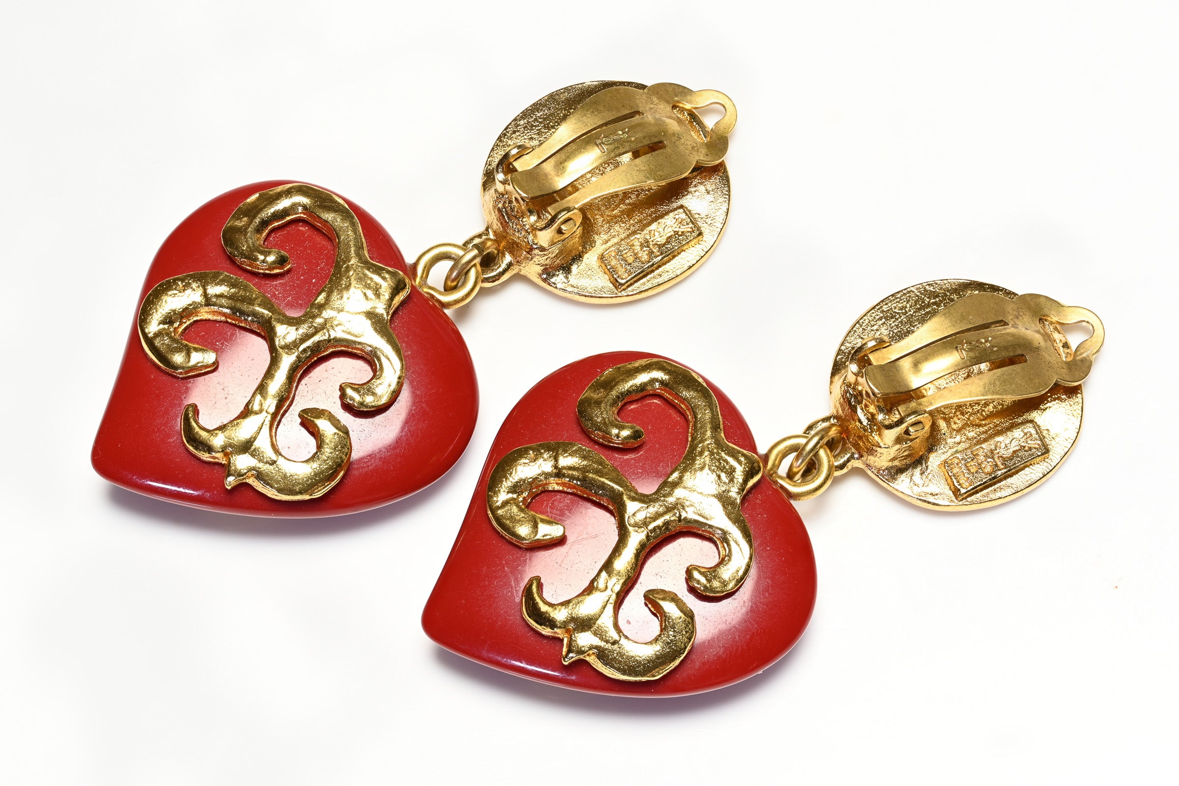 Vintage Yves Saint Laurent Paris Red Heart Long Earrings