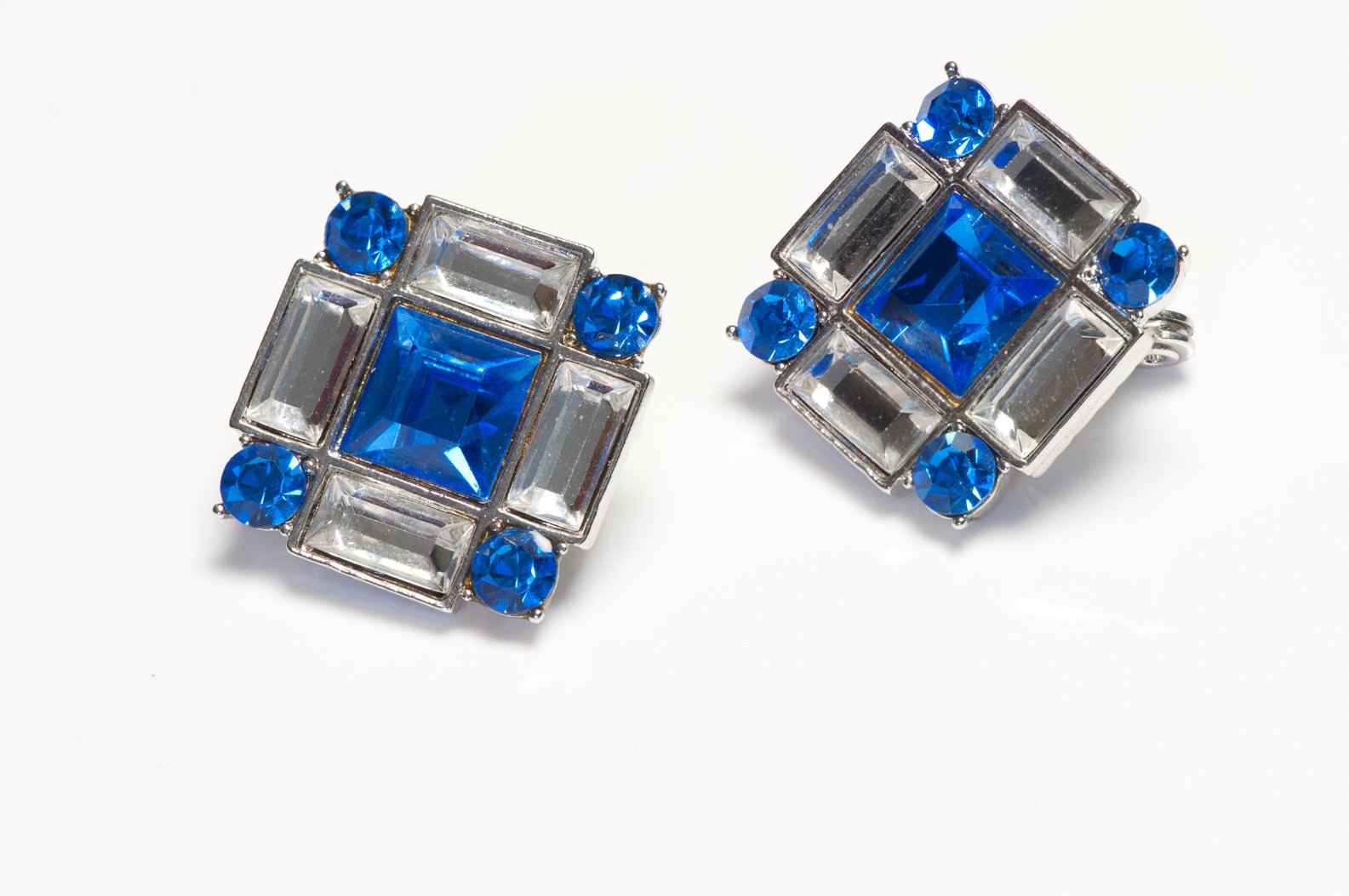 Vintage Yves Saint Laurent Paris Blue Crystal Geometric Earrings