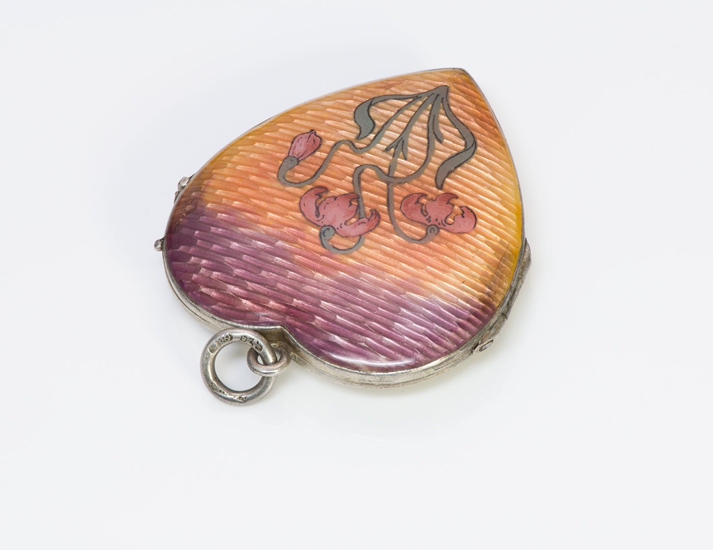 Art Nouveau Enamel Silver Heart Flower Pendant Locket