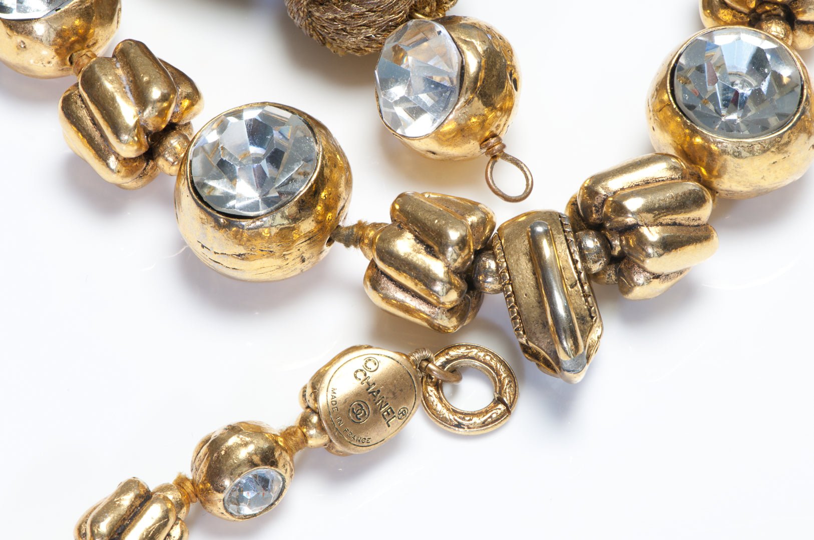 Chanel Paris 1980’s Goossens Hammered Metal Beads Crystal Tassel Chain Necklace