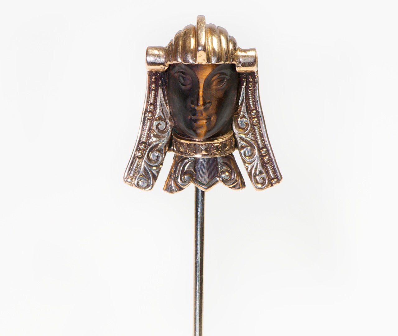 Egyptian Revival Gold Carved Tiger Eye Stick Pin