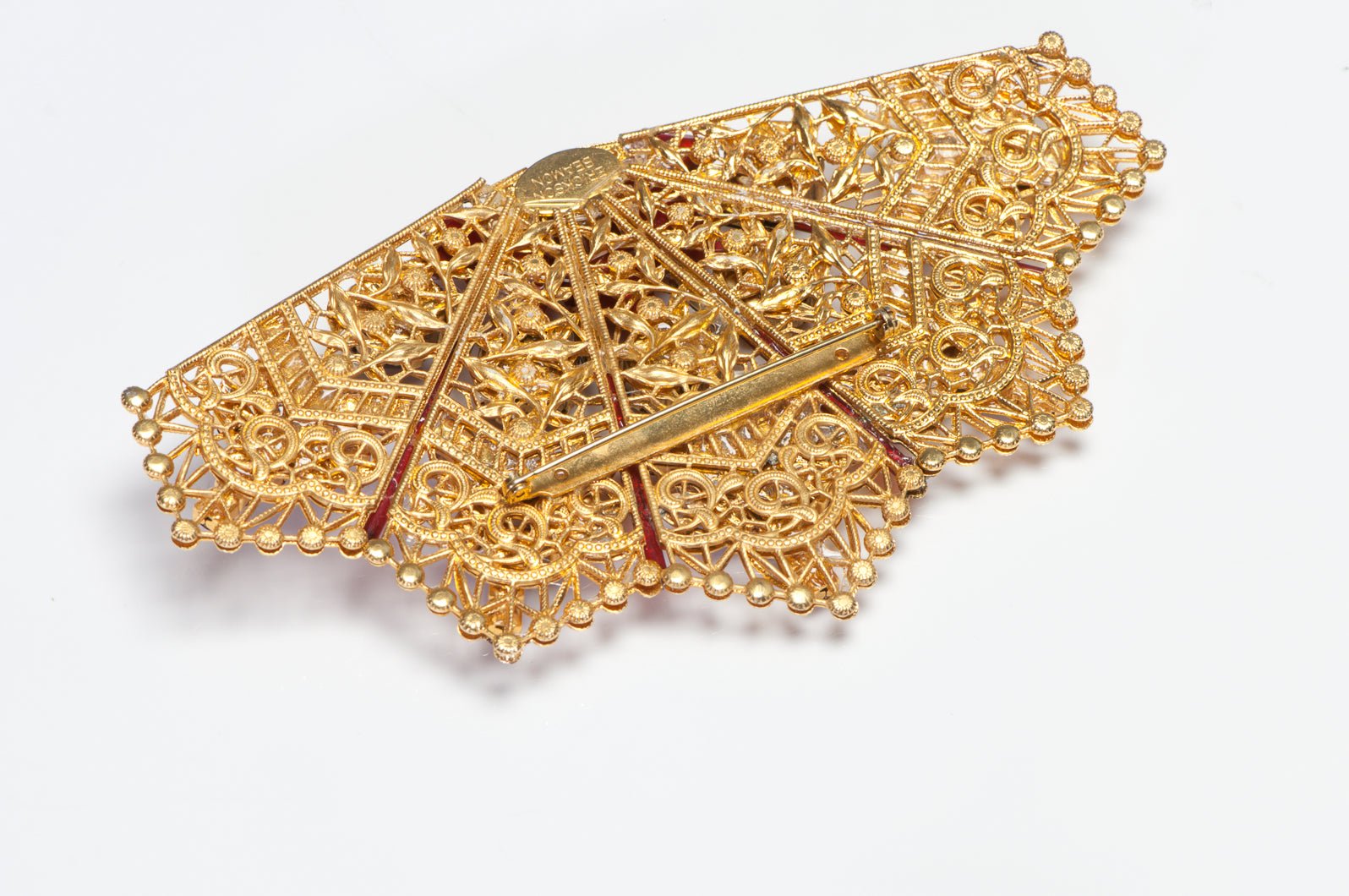 Erickson Beamon Red Crystal Filigree Metal Fan Brooch