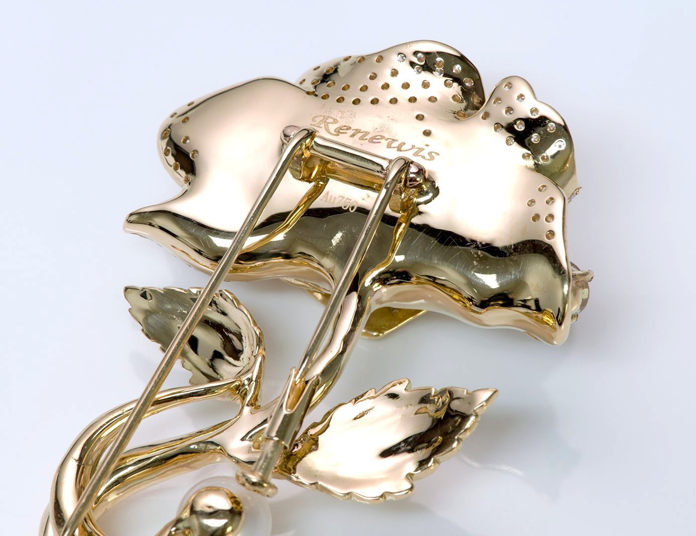 Renewis 18K Gold Diamond Sapphire Pearl Flower Brooch