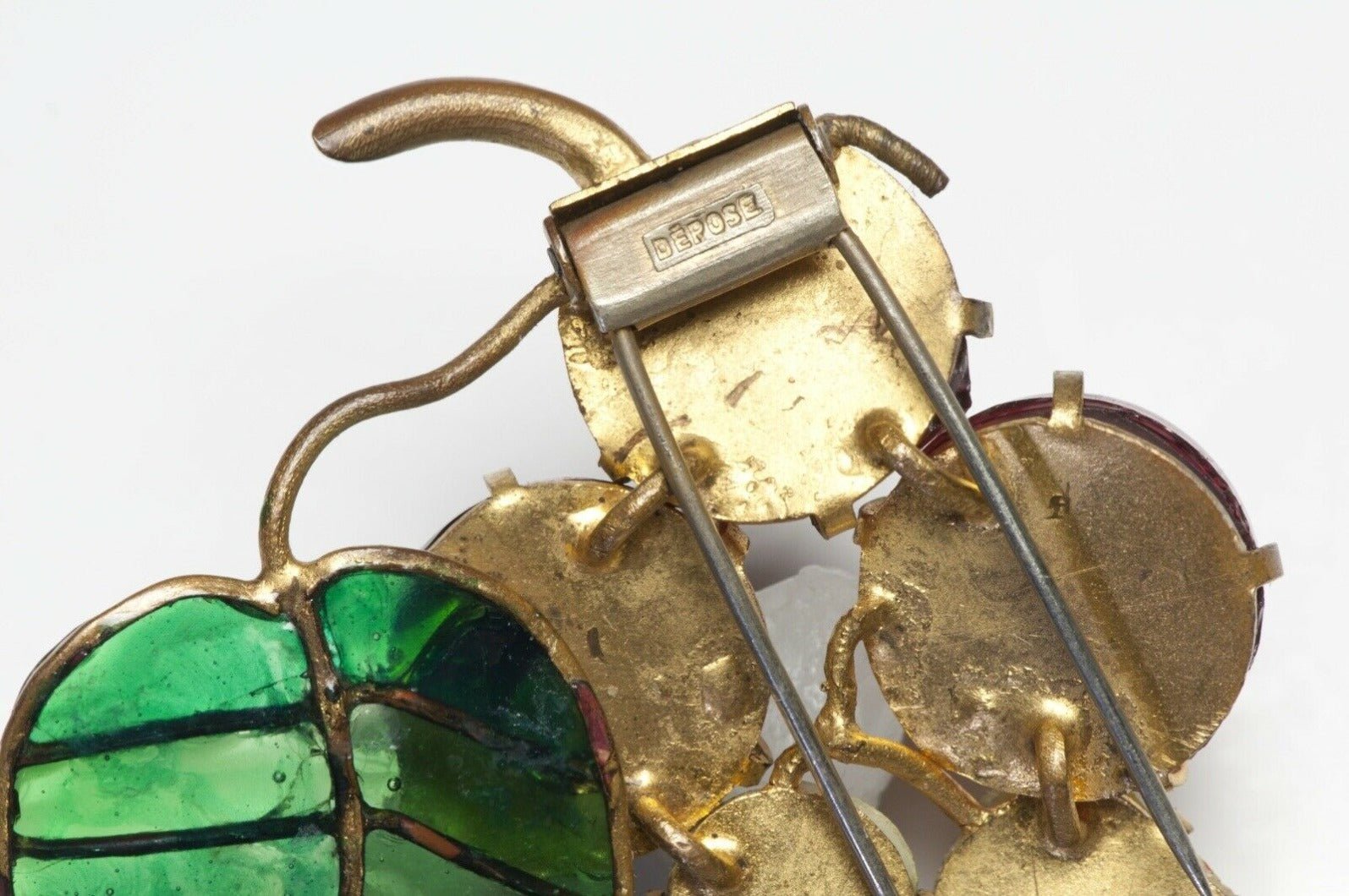 Roger Jean-Pierre Paris 1950’s Green Red Poured Glass Pear Cherry Fruit Brooch