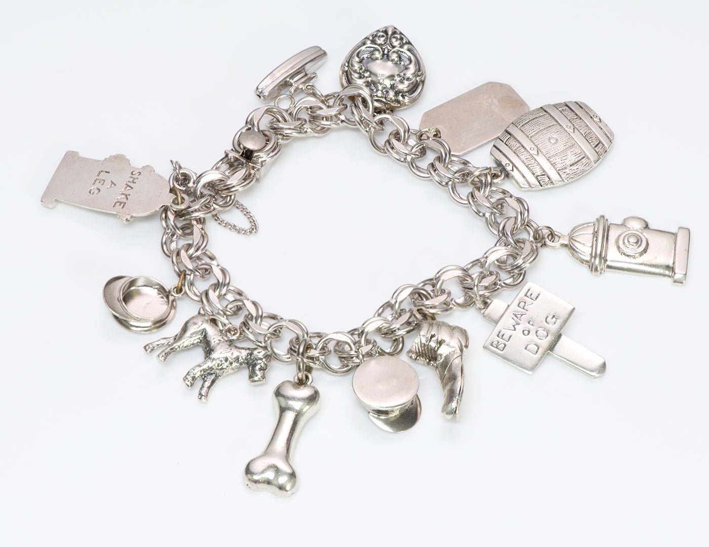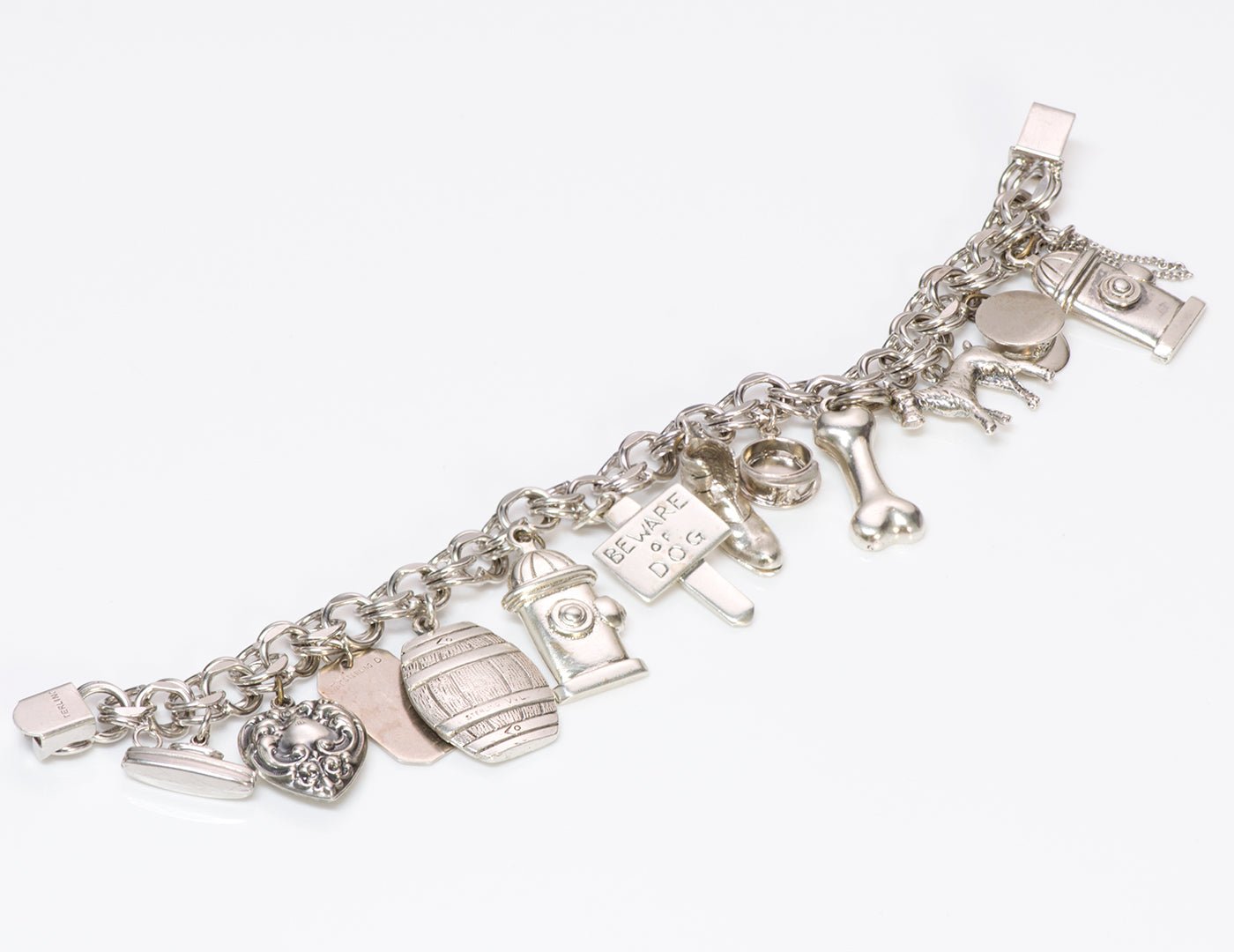 Sterling silver with multiple whimsical dog charms link bracelet.